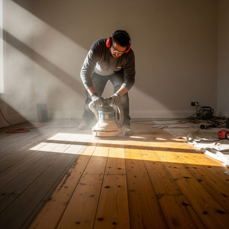 , hvor arbejdet udføres med præcision og omtanke for gulvets levetid.